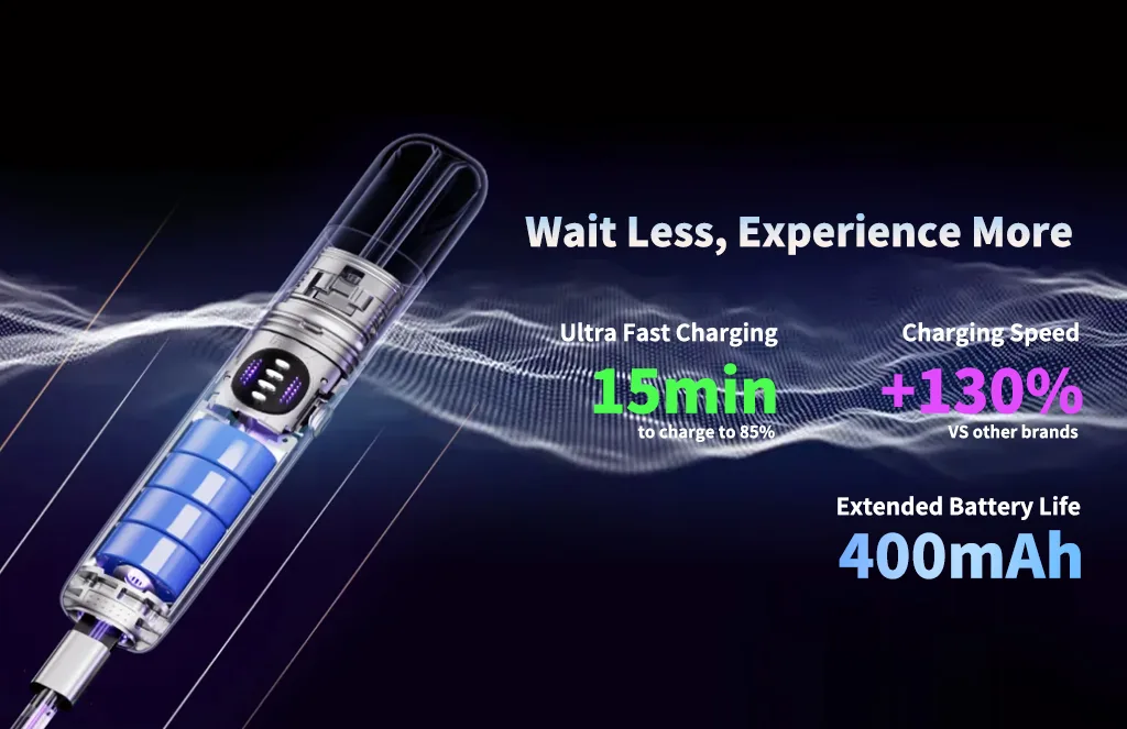 Charging is a breeze with the ultra-fast capability that reaches 85% in just 15 minutes. The device features a clear battery indicator, so you’ll always know your charge level, allowing you to keep your device topped up with ease. Coupled with its extended battery life, you can enjoy extended vaping sessions without frequent interruptions.